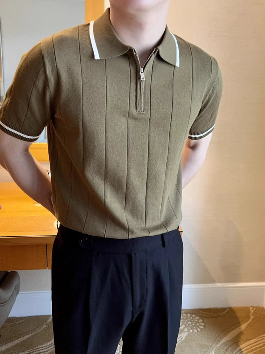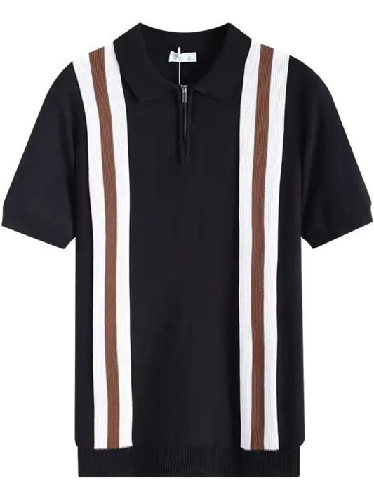 Men's Full Size Contrast Zip Collar Short Sleeve Knit Polo Plus Size