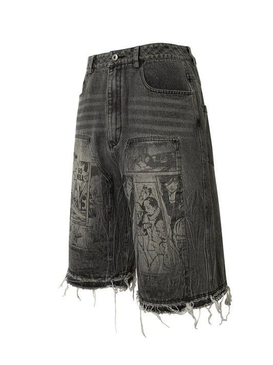 Men's Frayed Hem Denim Shorts