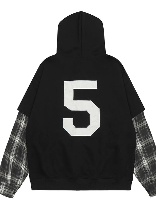 Men's Plaid Sleeve Patchwork Letter Zip-Up Hoodie