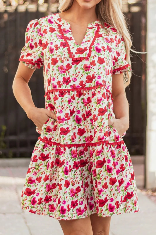 V-Neck Top and Summer Beach Floral Print Pants Two-Piece Set